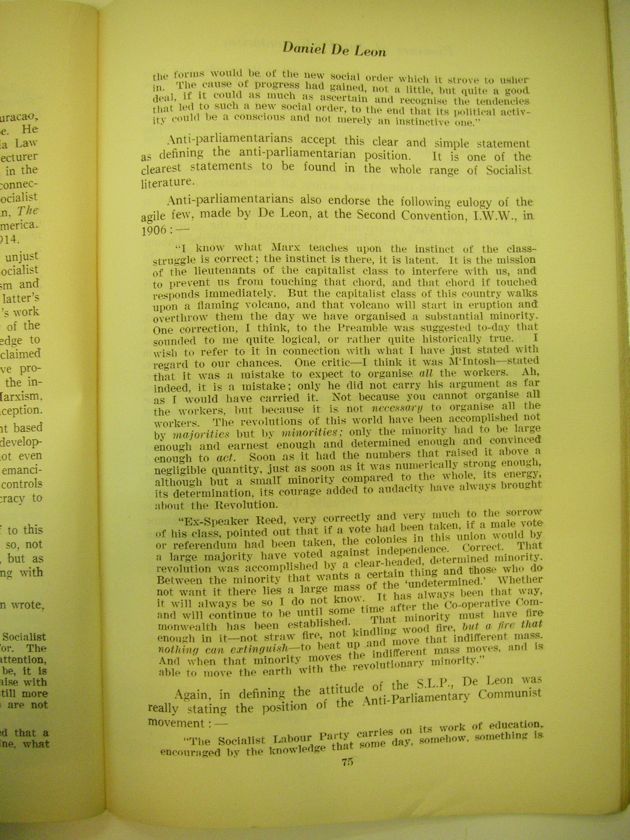 Anti-parliamentarians also endorse the following eulogy of the agile few, made by De Leon, at the Second Convention, I.W.W., in 1906:--