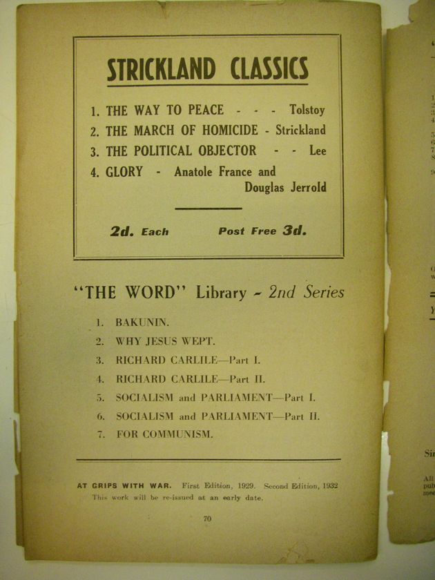 AT GRIPS WITH WAR. First Edition, 1929. Second Edition, 1932