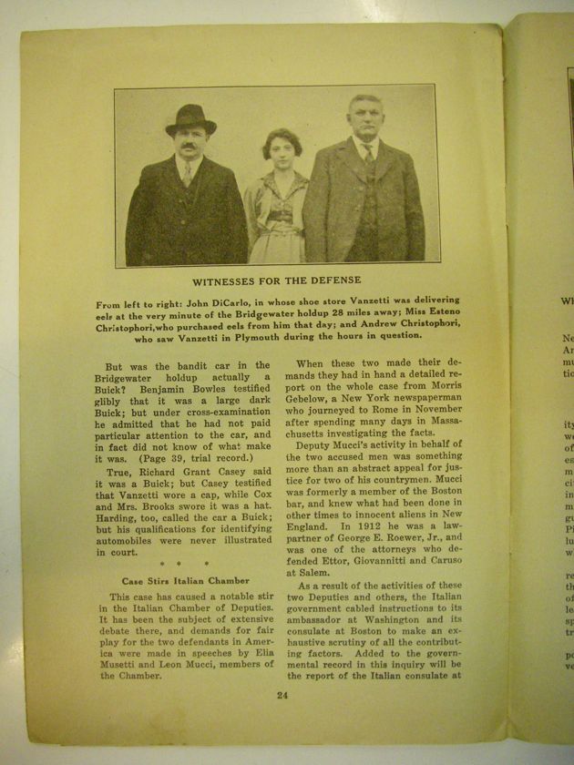 Deputy Mucc's activity in behalf of the two accused was something more than an abstract appeal for justice for two of his countrymen. Mucci was formerly a member of the Boston bar, and knew what had been done in other times to innocent aliens in New England. In 1912, he was a law-partner of George E. Roewer, Jr., and was one of the attorneys who defended Ettor, Giovannitti and Caruso at Salem.