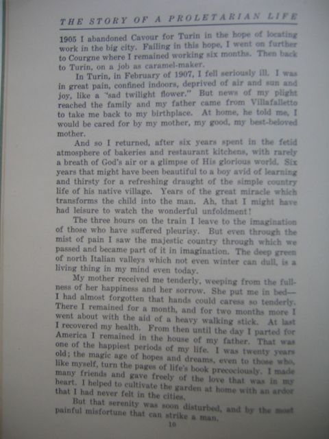 1905 I abandoned the Cavour for Turin in hope of locating work in the big city. Failing in this hope, I went on further to Courgne where I remained working six months. Then back to Turin, on a job as caramel-maker.
