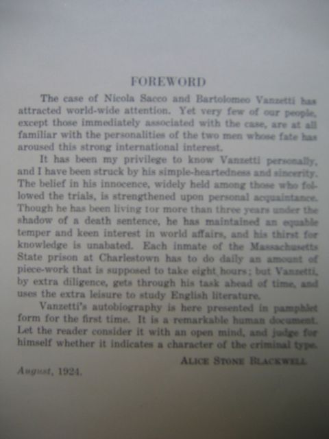 Vanzetti's autobiography is here presented in pamphlet form for the first time. It is a remarkable human document. Let the reader consider it with an open mind, and judge for himself whether it indicates a character of the criminal type.