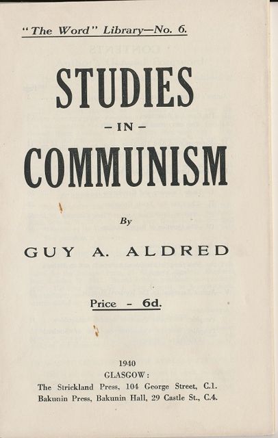 1940 GLASGOW: The Strickland Press, 104 George Street, C.1. Bakunin Press, Bakunin Hall, 29 Castle St., C.4.