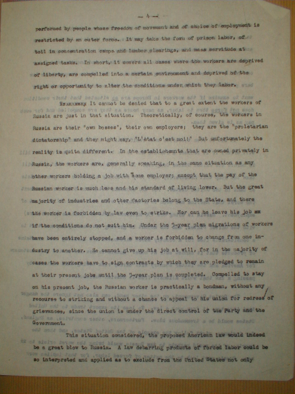 and that for that very reason labor in Russia cannot be considered free. Such an attitude on the part of the American courts would not be surprising in view of the prevailing American opinion about Russia and also because of certain known facts concerning the Russian workers.