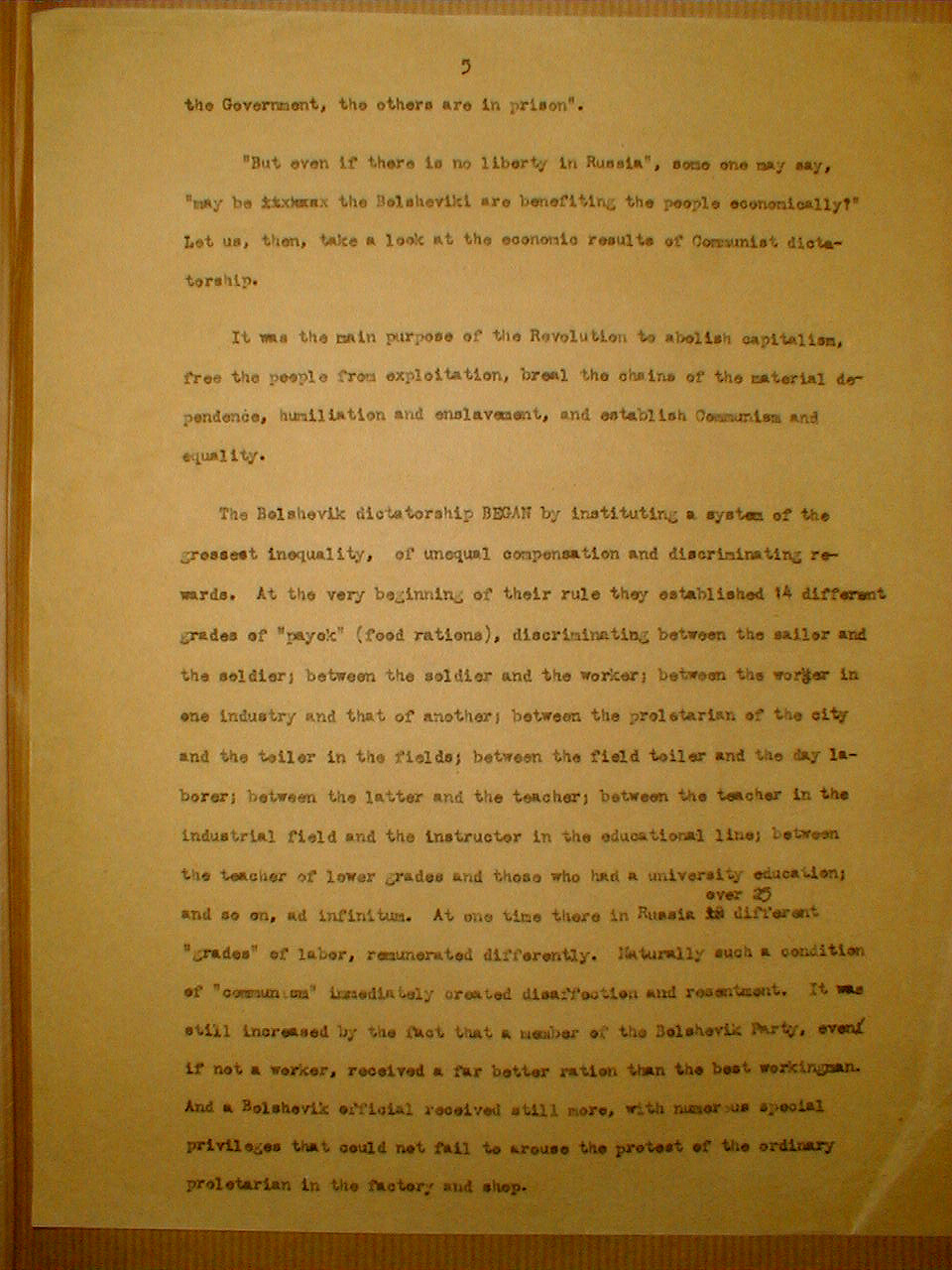The Bolshevik dictatorship BEGAN by instituting a system of the grossest inequality, of unequal compensation and discriminating rewards. At the very beginning of their rule they established 14 different grads of "payok" (food rations), discriminating between the sailor and the soldier; between the soldier and the worker; between the worker in one industry and that of another; between the proletarian of the city and the toiler in the fields; between the field toiler and the day laborer; between the latter and the teacher; between the teacher in the industrial field and the instructor in the educational line; between the teacher of lower grades and those who had a university education; and so on, ad infinitum. At one time there in Russia over 25 different "grades" of labor, renumerated differently. Naturally such a condition of "communism" immediately created disaffection and resentment. It was still increased by the fact that a member of the Bolshevik Party, even if not a worker, received a far better ration than the best workingman. And a Bolshevik official received still more, with numerous special privileges that could not fail to arouse the protest of the ordinary proletarian in the factory and shop.