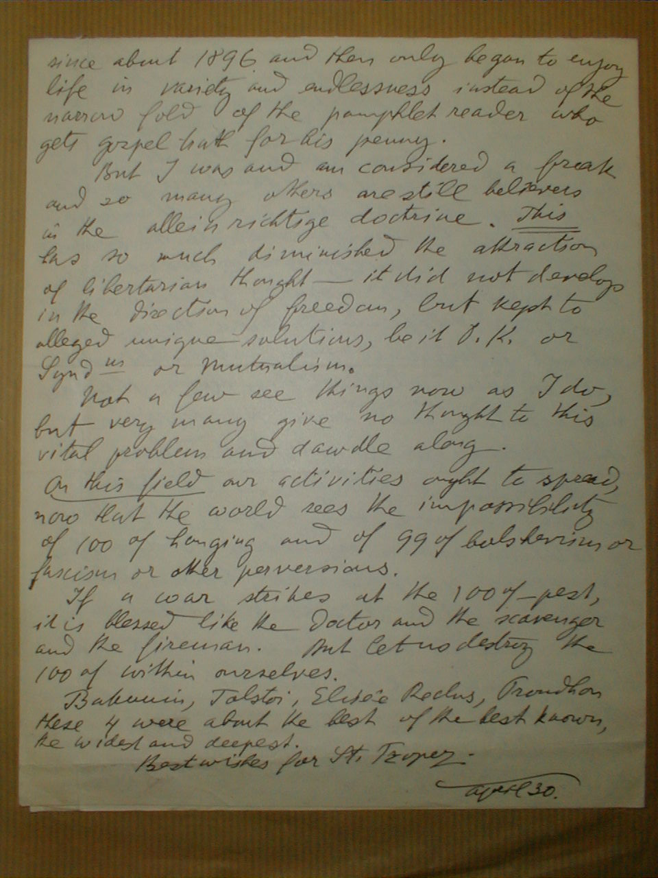 This letter is part of the International Institute for Social History's Alexander Berkman archive and appears in Anarchy Archives with ISSH's permission.