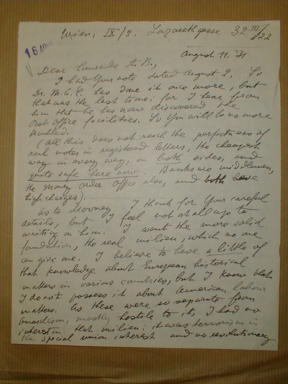 This letter is part of the International Institute for Social History's Alexander Berkman archive and appears in Anarchy Archives with ISSH's permission.