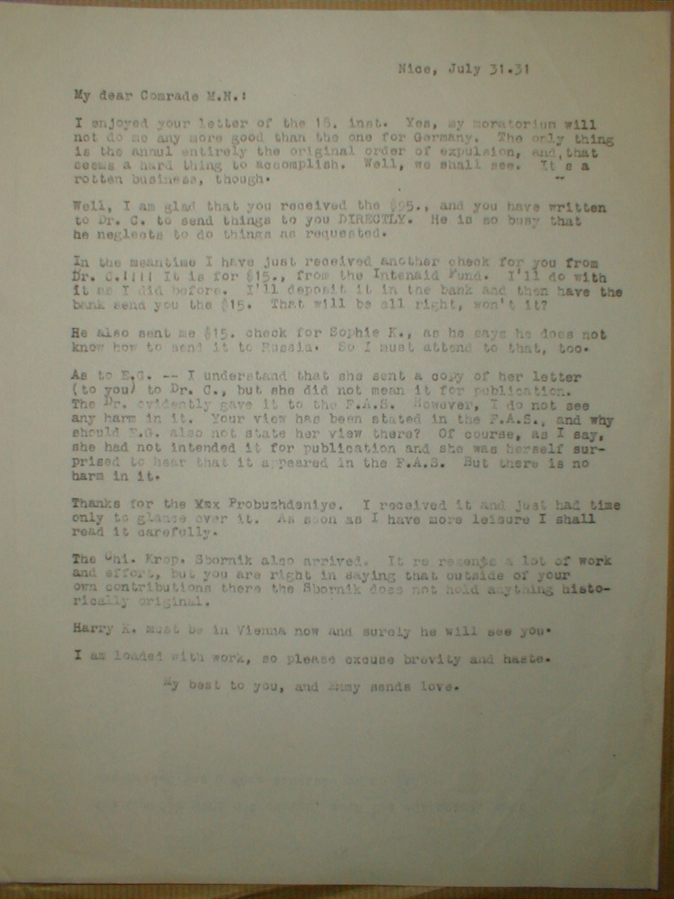 Berkman to Max Nettlau, July 31, 1931.