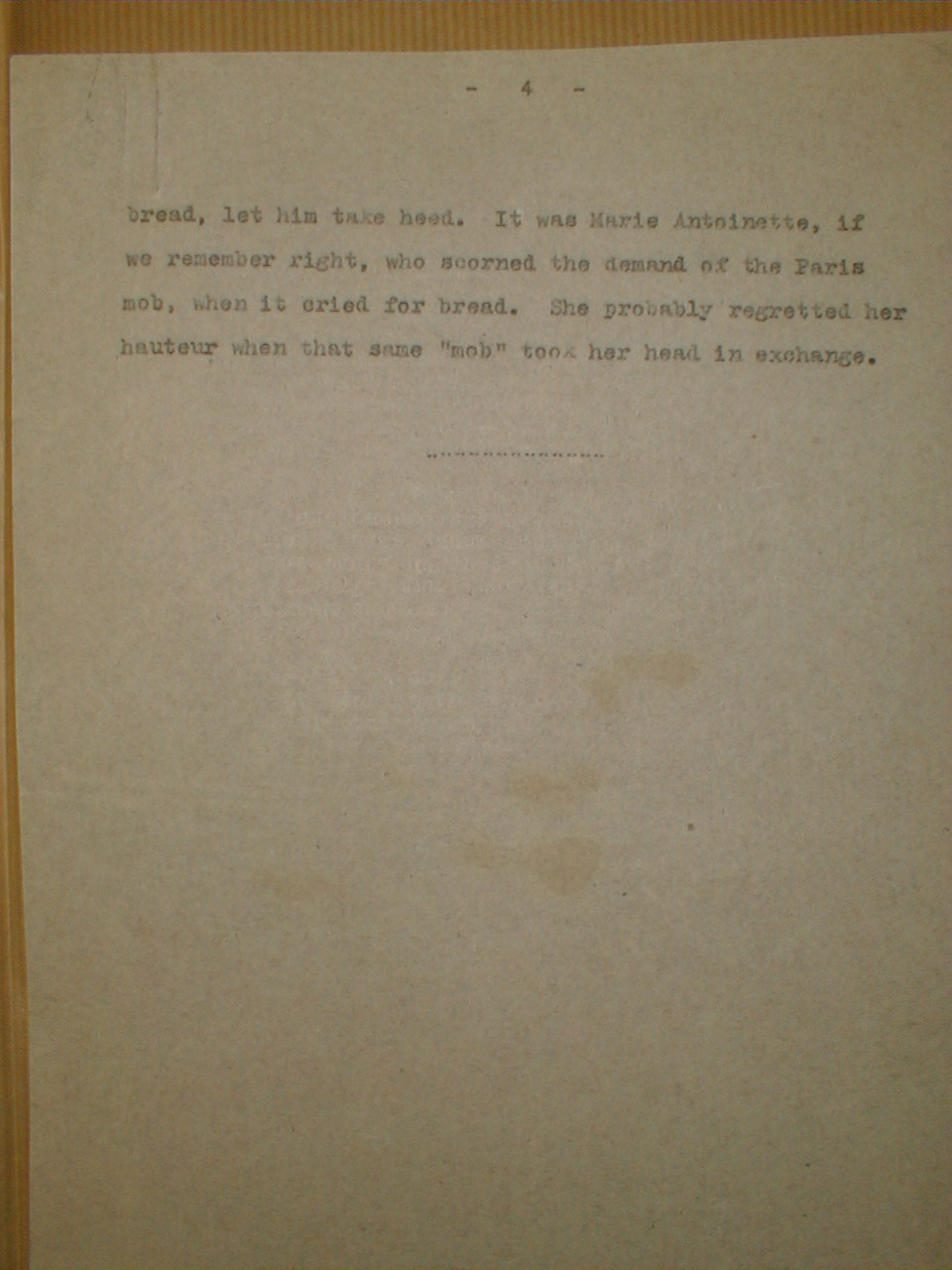 bread, let him take heed. It was Marie Antoinette, if we remember right, who scorned the demand of the Paris mob, when it cried for bread. She probably regretted her hauteur when the same "mob" took her head in exchange.