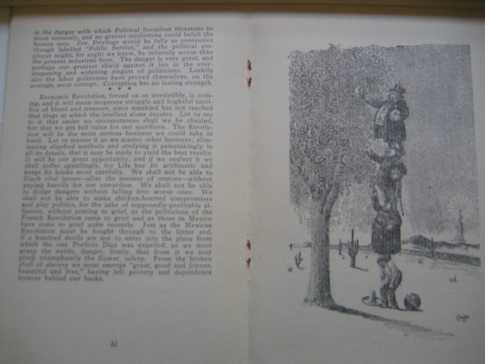 Economic Revolution, forced on its irresistibly, is coming, and it will mean desperate struggle and frightful sacrifice of blood and treasure, since mankind has not reached that stage at which the intellect alone decides. Let us see to it that under no circumstances shall we be cheated, but that we get full value for our sacrifices. The Revolution will be the most serious business we could take in hand. Let us master it as we master other business; eliminating slipshod methods and studying it painstakingly in all its details, that it may be made to yield the best results. It will be our great opportunity, and if we neglect it we shall suffer appallingly, for Life has its arithmetic and keeps its books most carefully. We shall not be able to flinch vital issues-after the manner of orators-without paying heavily for our cowardice. We shall not be able to flinch vital issues-after the manner of orators-without paying heavily for our cowardice. We shall not be able to dodge dangers without falling into worse ones. We shall not be able to make chicken-hearted compromises and play politics, for the sake of supposedly-profitable alliances, without coming to grief, as the politicians of the French Revolution came to grief and as those in Mexico have come to grief quite recently. Just as the Mexican Revolution must be fought through to the bitter end, if a hundred devils are not to enter into the place from rich the one Porfirio Diaz was expelled, so we must grasp the nettle, danger, firmly, that from it we may pluck triumphantly the flower, safety. From the broken shell of slavery we must emerge "great, good and joyous, beautiful and free," having left poverty and dependence forever behind our backs.