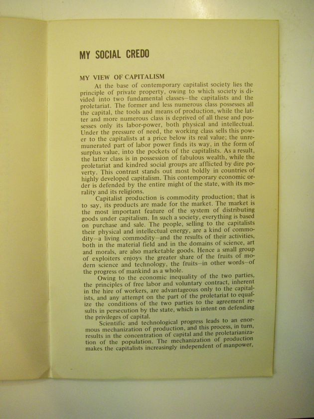 At the base of contemporary capitalist society lies the principle of private property, owing to which society is divided into two fundamental classes--the capitalists and the proletariat. The former and less numerous class possesses all the capital, the tools and means of production, while the latter and more numerous class is deprived of all these and possess only its labor-power, both physical and intellectual. Under the pressure of need, the working class sells this power to the capitalists at a price below its real value; the unremunerated part of labor power finds its way, in the form of surplus value, into the pockets of the capitalists. As a result, the latter class is in possession of fabulous wealth, while the proletariat and kindred social groups are afflicted by dire poverty. This contrast stands out most boldly in countries of highly developed capitalism. This contemporary economic order is defended by the entire might of the state, with its morality and its religions;.