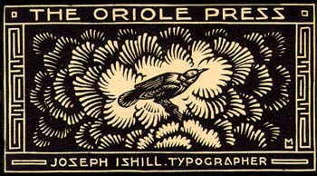 THIS BOOK WAS HAND-SET THROUGHT AND PRINTED ON A LITTLE RUSTY, WORN-OUT "FAVORITE" PRESS WHICH WAS ABANDONED IN A WOODEN SHED IN THE VICINITY OF BERKELEY HEIGHTS, NEW JERSEY. THE GARAMOND TYPE SELECETED IS CAST BY THE AMERICAN TYPE FOUNDERS. AFTER EACH FORM THE TYPE WAS DISTRIBUTED AND POSITIVELY NO PLATES MADE.