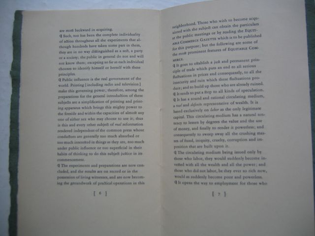 neighborhood. Those who wish to become acquainted with the subject can obtain the particulars at the public meetings or by reading the EQUITABLE COMMERCE GAZZETTE which is to be published for this purpose; but the following are some of the most prominent features of EQUITABLE COMMERCE.