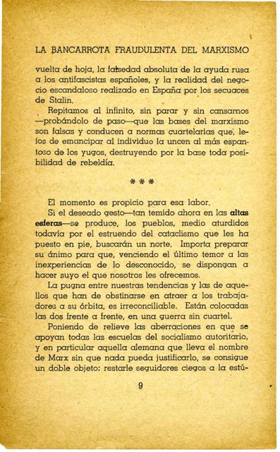 Si el deseado gesto -tan temido ahora en las altas esferas- se produce, los pueblos, medio aturdidos todavía por el estruendo del cataclismo que les ha puesto en pie, buscarán un norte. Importa preparar su ánimo para que, venciendo el último temor a las inexperiencias de lo desconocido, se dispongan a hacer suyo el que nosotros les ofrecemos.