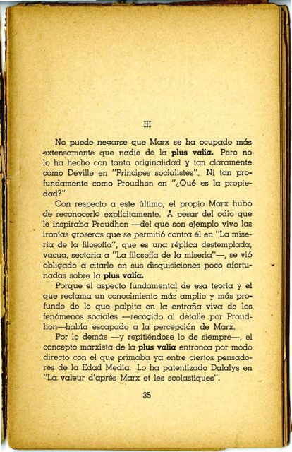 Por lo demás-y repitiéndose lo de siempre-, el concepto marxista de la plus valía entronca por modo directo con el que primaba ya entre ciertos pensadores de la Edad Media. Lo ha patentizado Dalalys en "La valeur d'aprés Marx et les scolastiques".