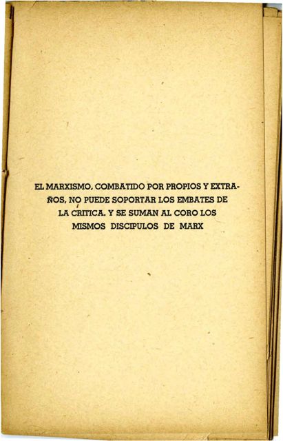 EL MARXISMO, COMBATIDO POR PROPIOS Y ESTRA-NOS, NO PUEDE SOPORTAR LOS EMBATES DELA CRITICA. Y SE SUMAN AL CORO LOSMISMOS DISCIPULOS DE MARX