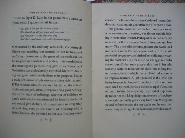 Measured by the ordinary yard-stick, Voltairine de Cleyre was anything but normal in her feelings and reactions. Fortunately, the great of the world cannot be weighed in numbers and scales; their worth lies in the meaning and purpose they give to existence, and Voltairine has undoubtedly enriched life with meaning and given sublime idealism as its purpose. But, as a study of human complexities she offers rich material.