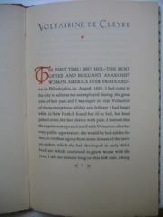 [E.G. makes a number of errors in this essay that should be noted: Voltairine died on June 20, not June 6, 1912; her father's name was Hector de Claire, not August de Cleyre; Voltairine taught only English, not "languages"; and Voltairine's son, Harry, in fact greatly admired his mother. See Sharon Presley and Crispin Sartwell, Exquisite Rebel, SUNY Press: 2005, p. 27-28.