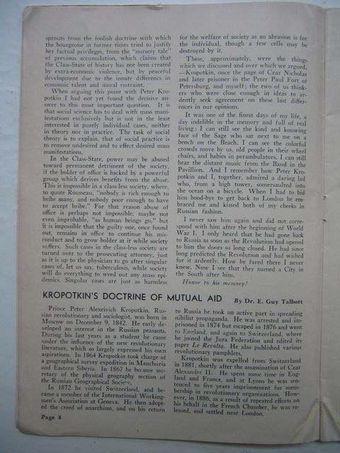 These, approximately, were the things which we discussed and over which we argued, --- Kropotkin, once the page of Czar Nicholas and later prisoner in the Peter Paul Fort of Petersburg, and myself; the two of us thinkers who were close enough in ideas to ardently seek agreement on these last differences in our opinions.