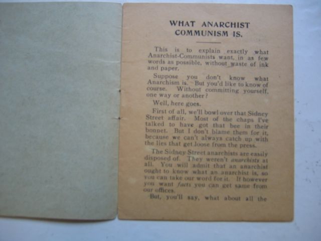 The Sidney Street anarchists are easily disposed of. They weren't anarchists at all. You will admit that an anarchist ought to know what an anarchist is, so you can take our word for it. If however you want facts you can get same from our offices.