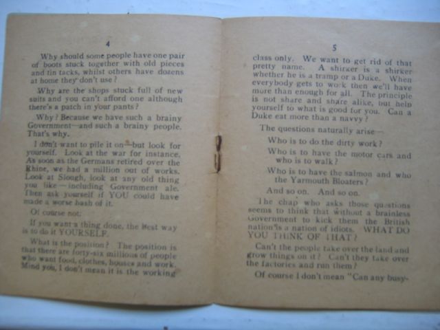 class only. We want to get rid of that pretty name. A shirker is a shirker weather he is a tramp or a Duke. When everybody gets to work then we'll have more than enough for all. The principle is not share an share alike, but help yourself to what is good fro you. Can a Duke eat more than a navy?
