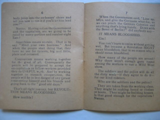 Communism means working together for the good of all. Consequently the people will be prepared to accept the ex-capitalists as fellow-workers provided they do USEFUL work. And by working together in staunch co-operations, the people will be in less danger of any tyrant resurrecting himself and his friends and gong back to the "good old days."