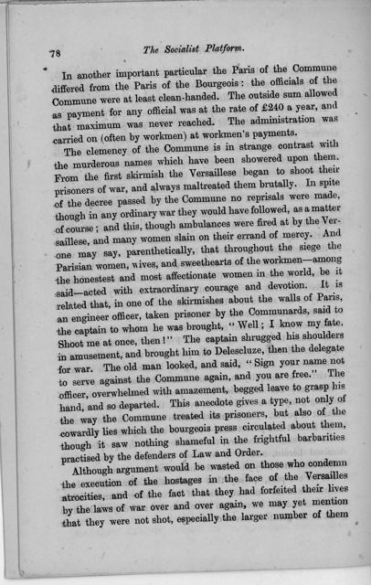 Although argument would be wasted on those who condemn the execution of the hostages in the face of the Versailles atrocities, and of the fact that they had forfeited their lives by the laws of war over and over again, we may yet mention that they were not shot, especially the larger number of them