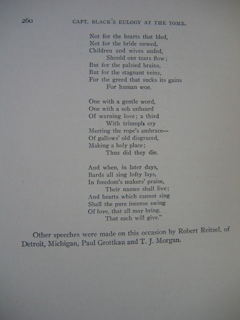 Other speeches were made on this occasion by Robert Reitzel, of Detroit, Michigan, Paul Grottkau and T.J. Morgan.