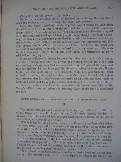 The second point argued seems to me to be equally conclusion. In the case of the People vs. Coughlin, known as the Cronin case, recently decided, the Supreme Court, in a remarkably able and comprehensive review of the law on this subject, says, among other things: